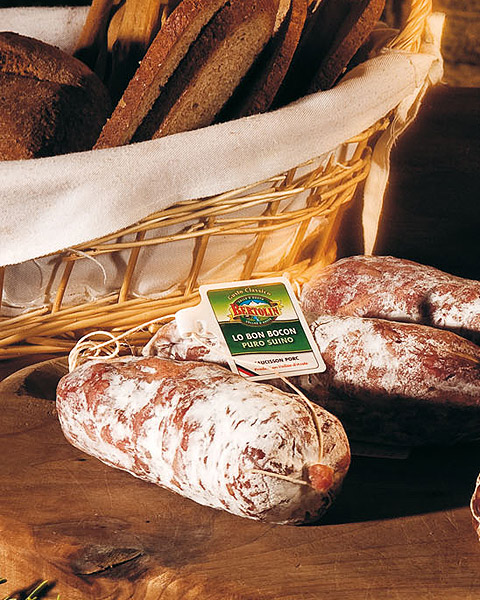 C'est un saucisson pur porc dont la préparation emploie les meilleures parties de l'animal, de l'épaule à la cuisse, et au carré.