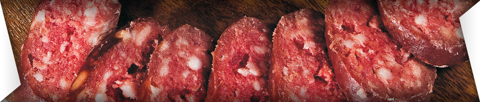 Ingrédients : Pommes de terre 63%, betteraves rouges 17%, poitrine de porc 10%, lard de porc 10%, sang de porc, sel, vin, épices, herbes aromatiques de montagne, nitrate végétal.