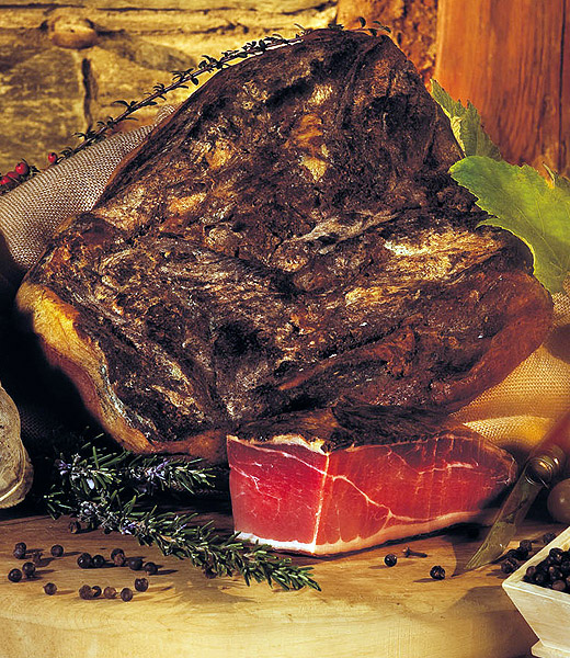 Reinhold speck est ensuite affiné pendant au moins 120 jours. Ce produit fait revivre les traditions de la culture walser, qui avait comme coutume celui de fumer les produits pour les conserver.